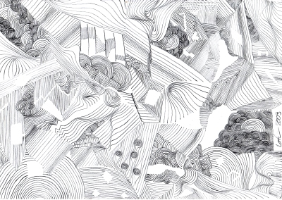"Geschwüre mit Ein- und Ausgängen" - VBE-Werbebleistift auf Normalpapier, 29,7x21cm